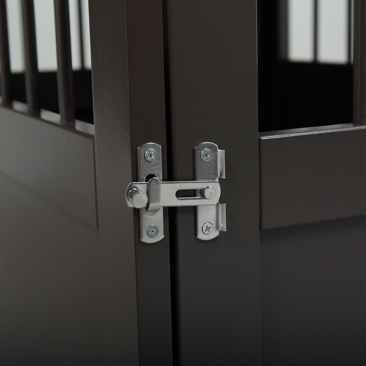 [Double Lock Door]: The door is secured with double locks. One with a magnetic lock allows your pet to open from the inside. The other with a metal latch, only open-able from outside.
